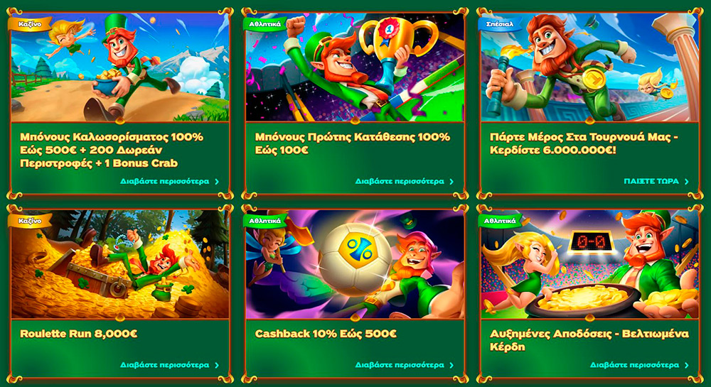 Το GreenLuck καζίνο προσφέρει στους παίκτες του πολλούς τρόπους για να κερδίζουν μπόνους, επιστροφές χρημάτων, δωρεάν περιστροφές, Bonus Crabs, και πολλά άλλα.